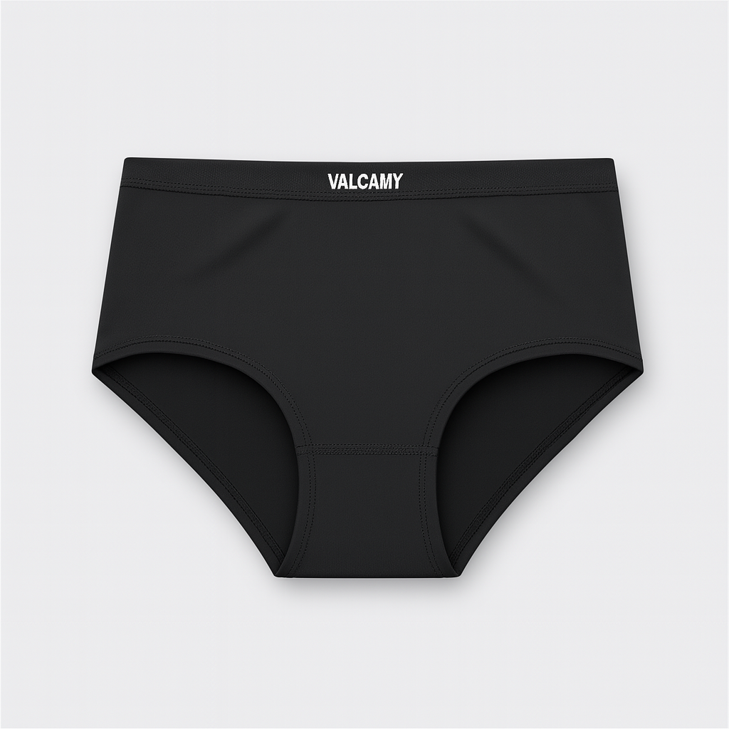 Bóxer femenino de tiro alto, confeccionado en tela suave y elástica para brindar comodidad y ajuste perfecto. Diseño liso y minimalista con pretina elástica que lleva el logo VALCAMY en la parte frontal. Ideal para uso diario gracias a su estilo moderno y sujeción confortable.